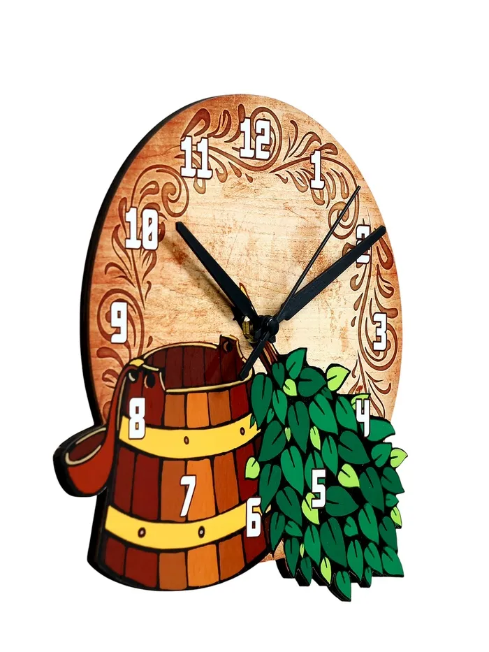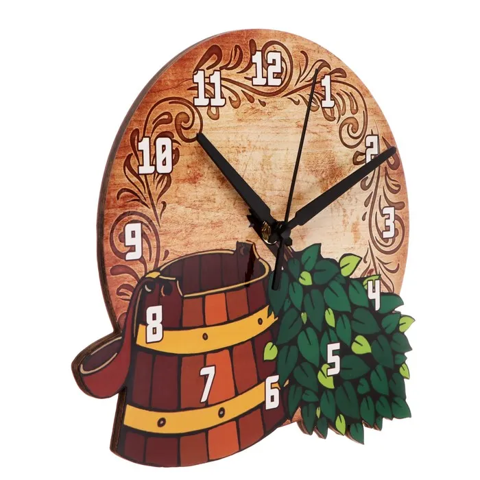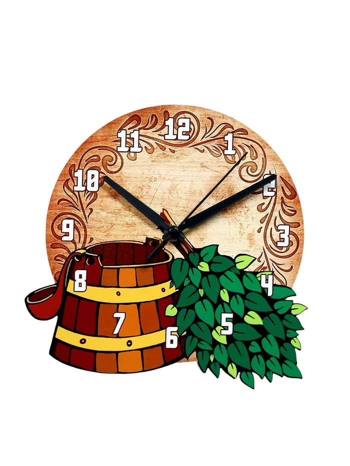 Согласитесь, время в бане летит незаметно. Впрочем, как и всегда, когда занимаешься тем, что действительно нравится. Однако забыться в парной надолго может быть опасно для здоровья. Избежать подобных ситуаций вам помогут настенные часы интерьерные "Ведро и веник" - стильный аксессуар отлично впишется в банный интерьер и станет полезным подарком родным и близким.
