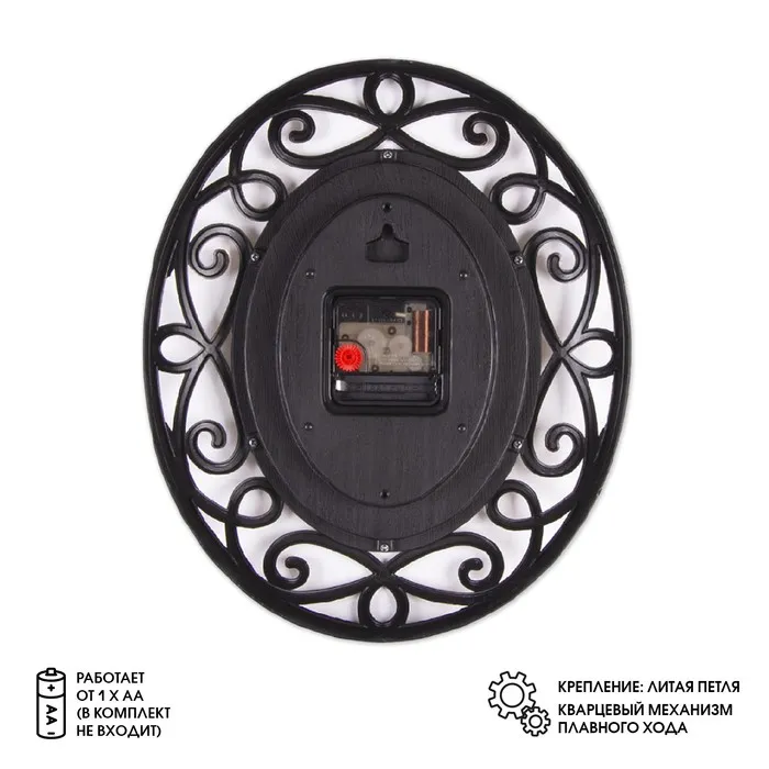 Настенные часы - отличное решение для тех, кто хочет сделать свой интерьер оригинальным и индивидуальным. Винтажный стиль, изысканный ажурный орнамент добавит шарма в любое помещение. Настенные часы оснащены надежным кварцевым бесшумным механизмом, он прост в обращении и долговечен в использовании (элемент питания: тип АА/ 1.5 V, в комплект не входит). Кварцевый механизм гарантирует точность хода и долгосрочную эксплуатацию.