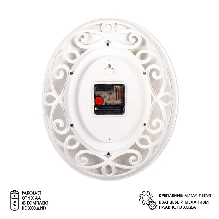 Настенные часы - отличное решение для тех, кто хочет сделать свой интерьер оригинальным и индивидуальным. Винтажный стиль, изысканный ажурный орнамент добавит шарма в любое помещение. Настенные часы оснащены надежным кварцевым бесшумным механизмом, он прост в обращении и долговечен в использовании (элемент питания: тип АА/ 1.5 V, в комплект не входит). Кварцевый механизм гарантирует точность хода и долгосрочную эксплуатацию.