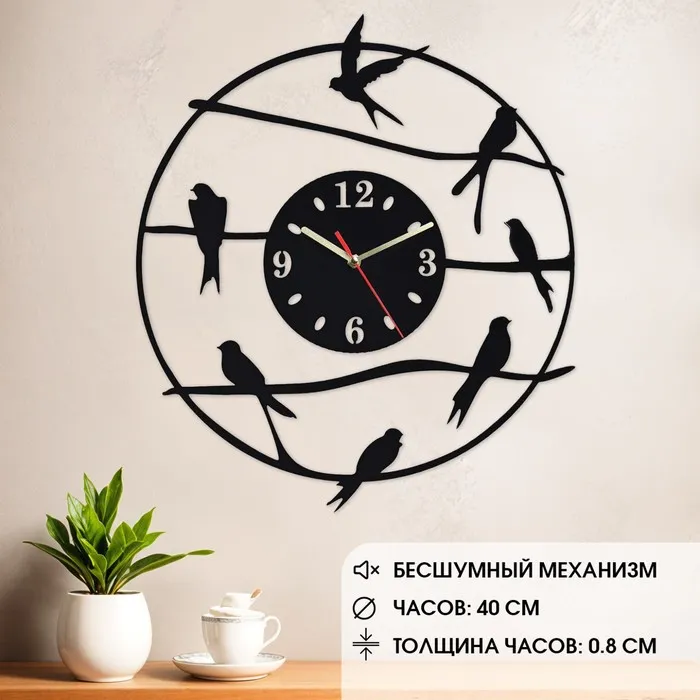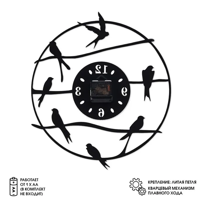 Часы настенные из металла "Птички", бесшумные, d-40 см, АА — Характеристики