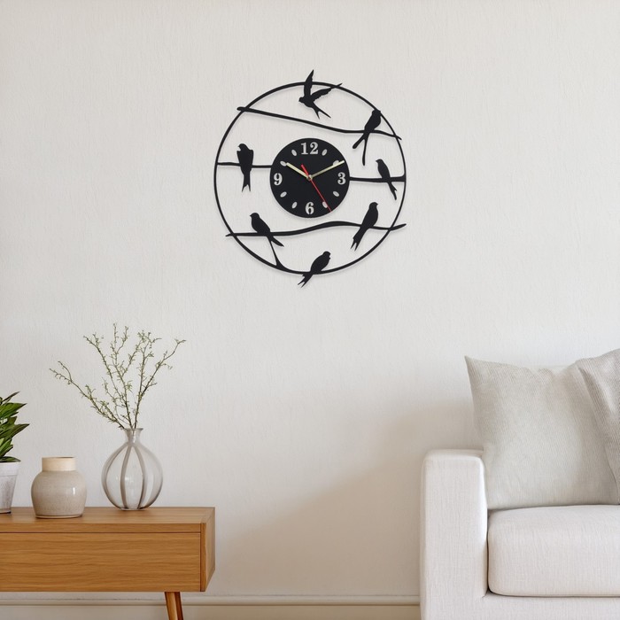 Часы настенные из металла "Птички", бесшумные, d-40 см, АА