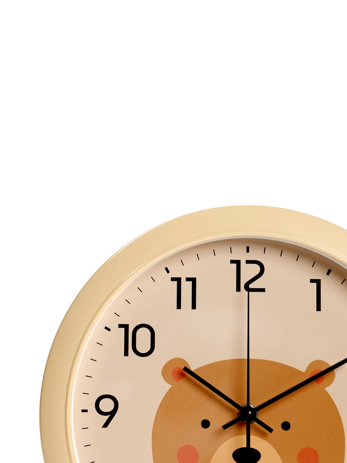 Круглые настенные часы диаметром 29 см с милым изображением медвежонка на мягком бежевом фоне создают атмосферу защищённости и тепла в детской комнате. Кварцевый механизм с плавным ходом стрелок и арабскими цифрами превращает отсчёт времени в спокойное, дружелюбное напоминание о буднях.