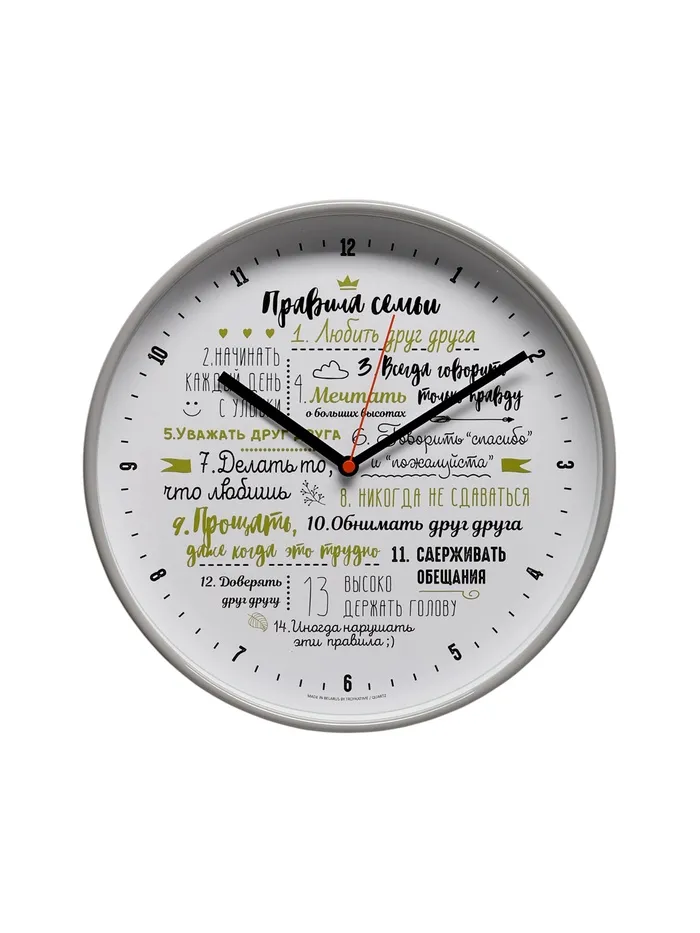 Часы настенные "Правила семьи", плавный ход, d-30.5 см — Характеристики