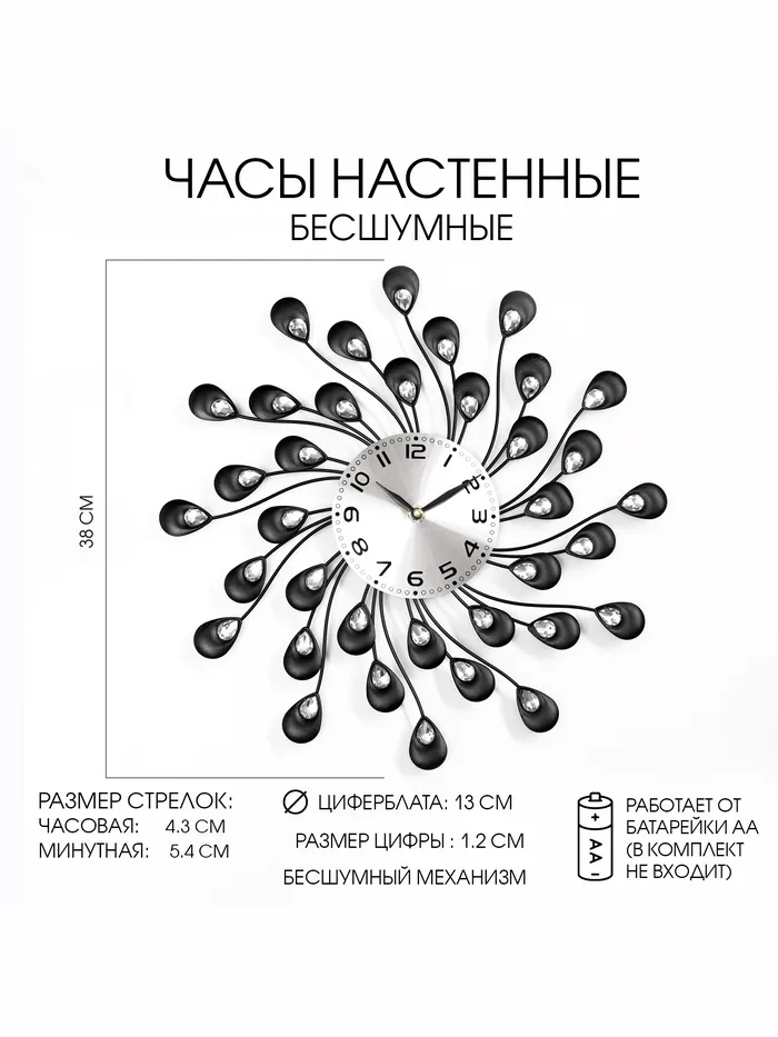 Часы настенные, серия: Ажур, "Зеркальные фигуры", d-70 см — Характеристики