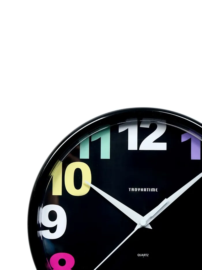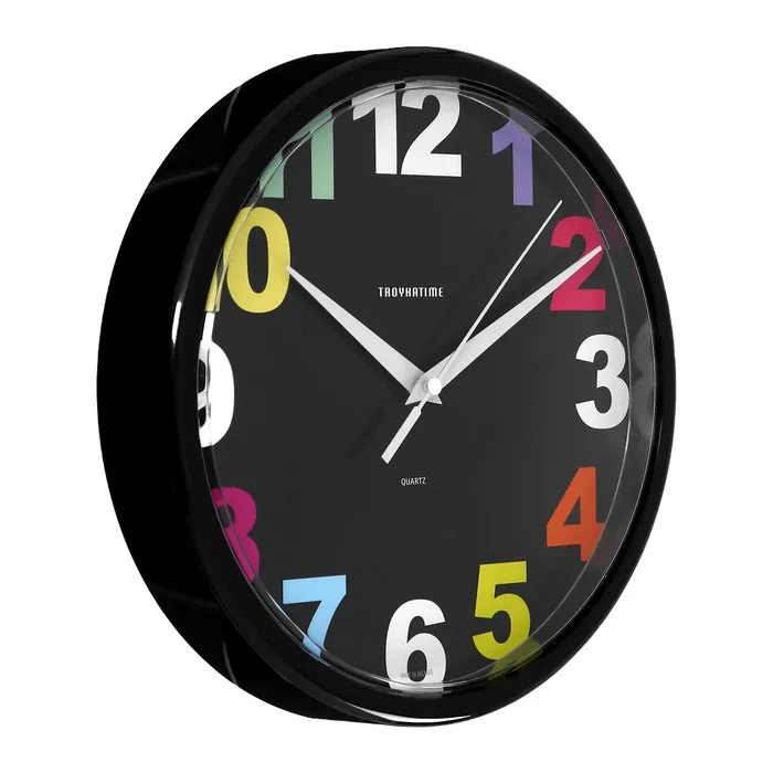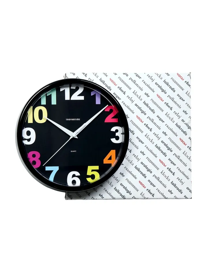 Часы настенные, серия: Детские, "Радужные цифры", d-=3 см, плавный ход, черный обод — Характеристики