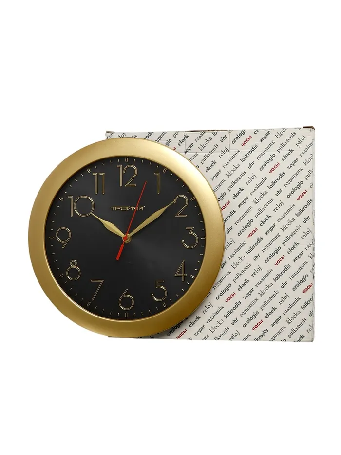 Часы настенные, серия: Классика, дискретный ход, d=29 см, золотистый обод — Характеристики