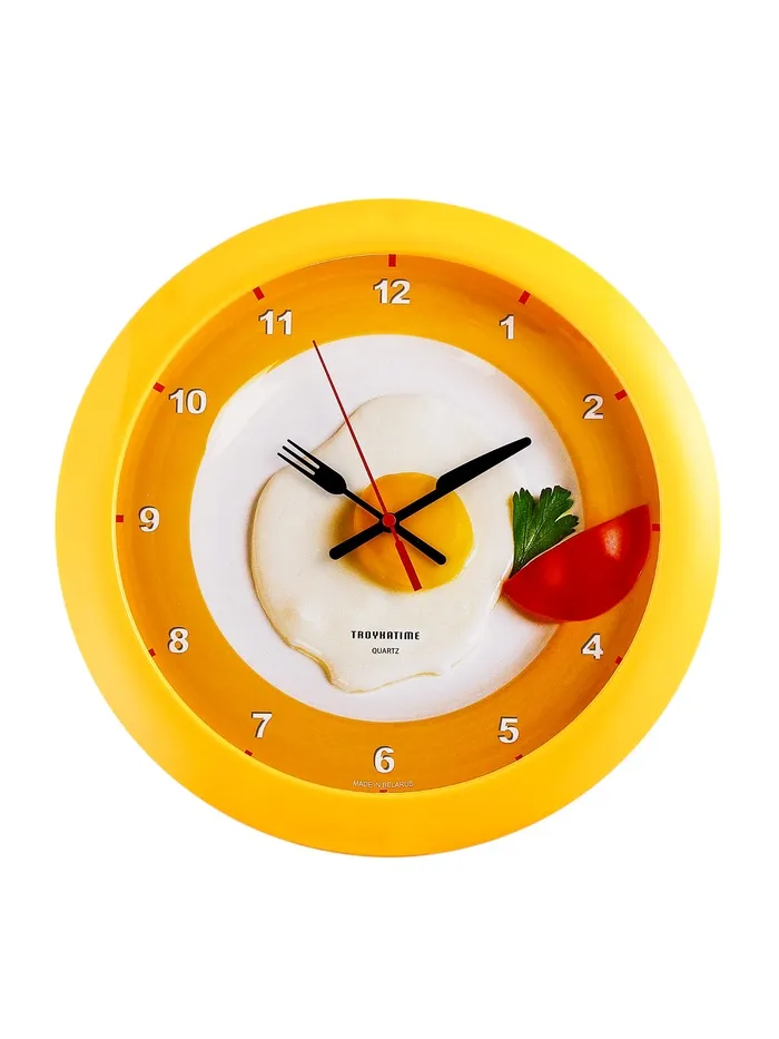 Часы настенные, серия: Кухня, "Яичница", d=29 см, плавный ход, желтый обод — Характеристики