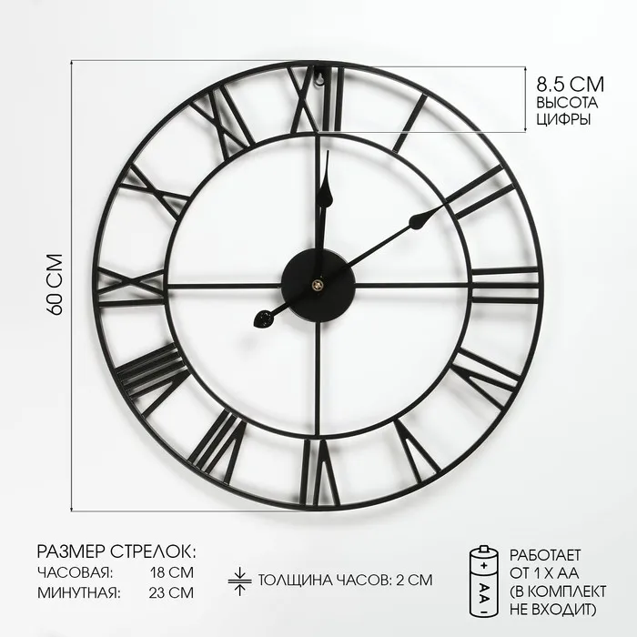 Часы настенные, серия: Лофт, "Талан", дискретный ход, d-60=см, чёрные — Характеристики