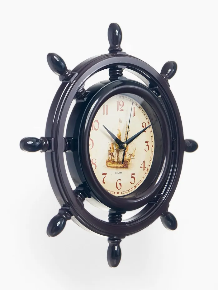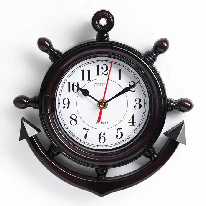 Часы настенные, серия: Море, "Штурвал", плавный ход, d-35 см, коричневая патина — Характеристики