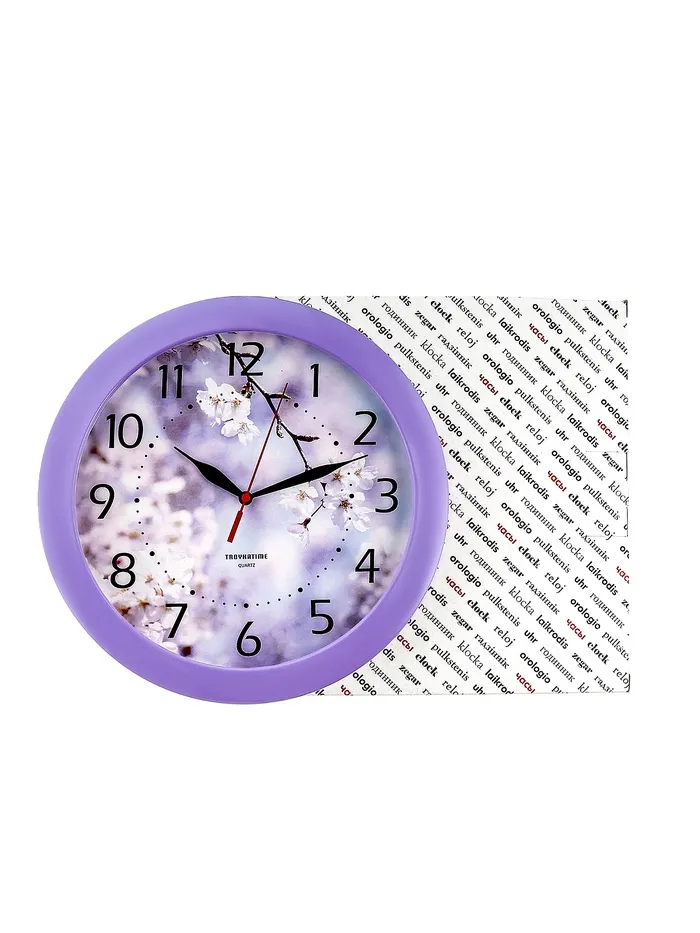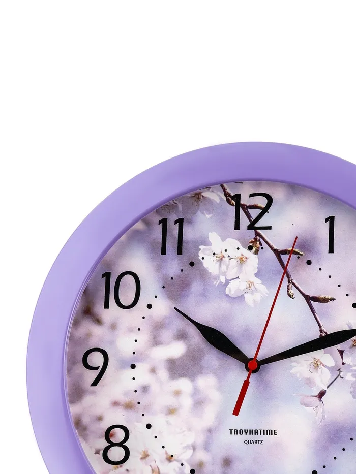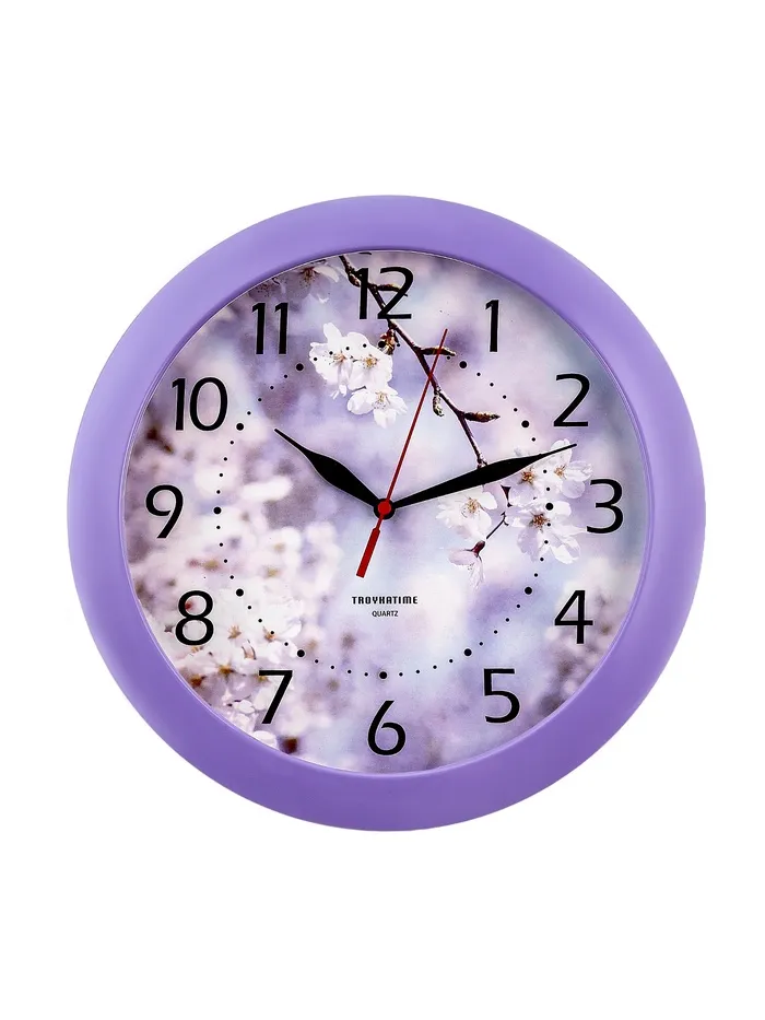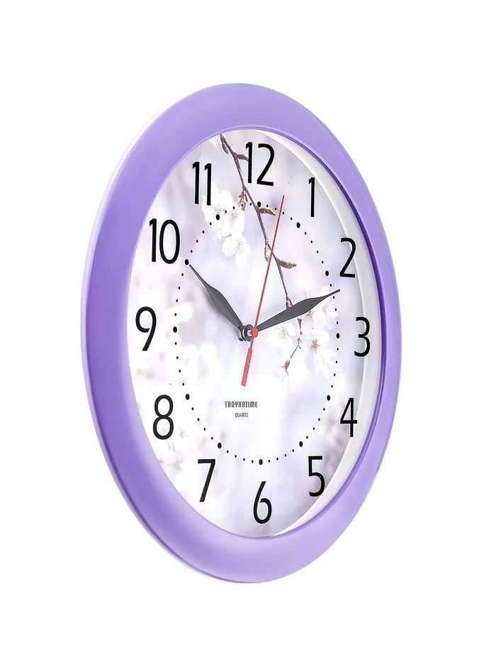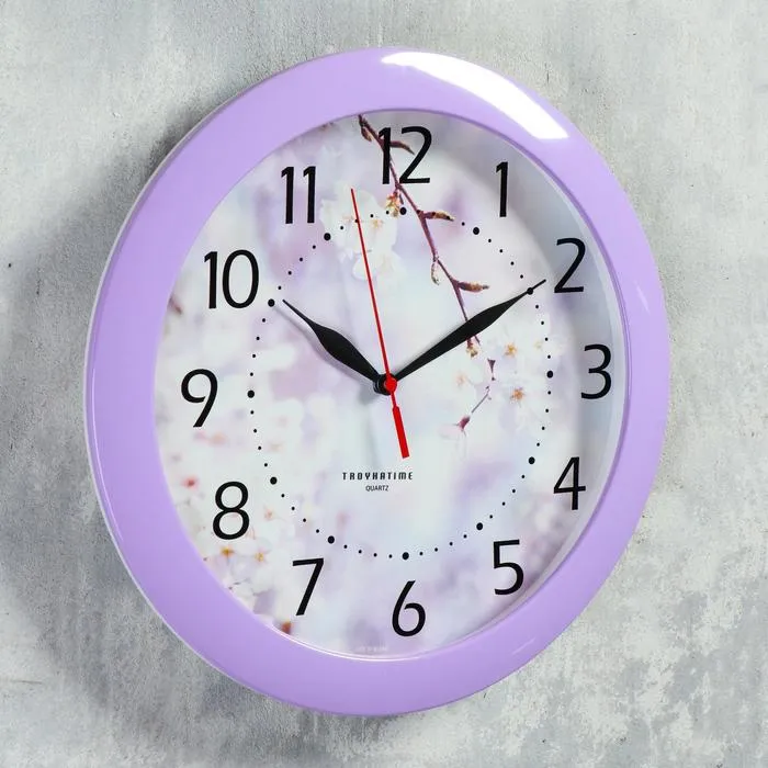 Часы настенные, серия: Цветы, "Цветущее дерево", плавный ход, d=29 см, сиреневый обод — Характеристики