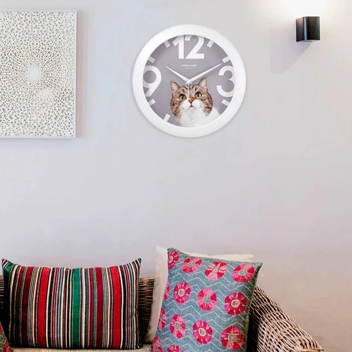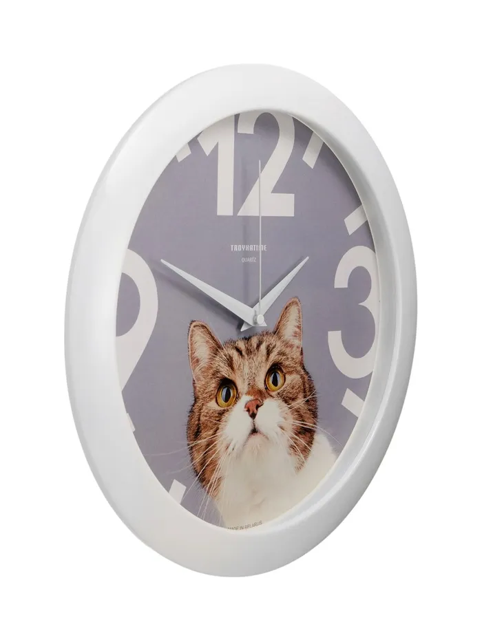 Часы настенные, серия: Животный мир, "Кот", d=29 см, плавный ход, белый обод — Характеристики