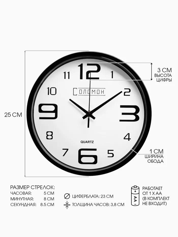 Часы настенные "Соломон" станут настоящим украшением и дополнением вашего интерьера. Модель можно разместить дома в гостиной, спальне, кухне или в офисе. Интересный дизайн и использованная цветовая гамма изделия придадут любому помещению нотки уюта и гармонии. Стильные необычные часы удачно оформят любой интерьер от современного до детского.