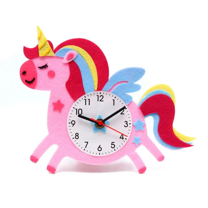 Набор для создания детских настольных часов способствует развитию мелкой моторики ребёнка, в развлекательной форме помогает изучить, как работает часовой механизм и ответить на вопрос "что такое время?"