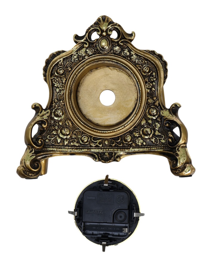 Часы настольные имеют кварцевый механизм, который гарантирует высокую точность хода. Часы не требуют частой замены батареек (тип АА, 1 шт, в комплект не входит), благодаря экономичному механизму. Чтобы вставить батарейку, необходимо достать циферблат, внутри есть отделение для батареек.