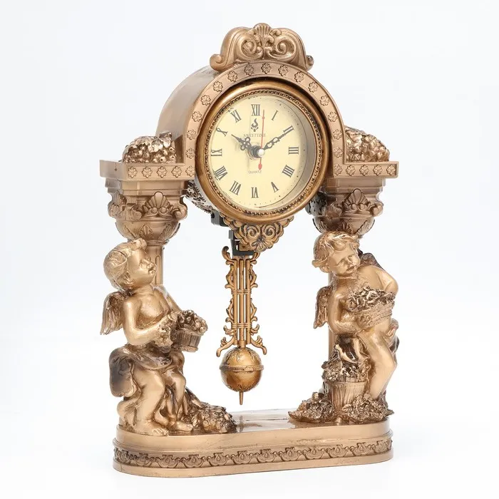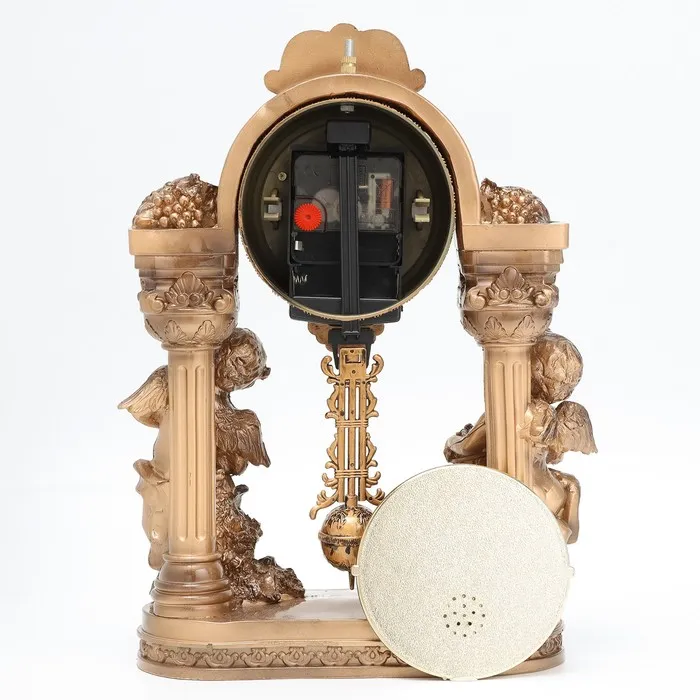 Часы настольные представлены в оригинальном дизайне, они отлично впишутся в интерьер в стиле рококо, барокко, классический. Интерьерные часы станут прекрасным декором для дома и дачи, их можно поставить как на прикроватную тумбочку в спальне, детской комнате, гостиной так и на стол или на комод в зале, холле или на кухне. Часы настольные имеют кварцевый механизм, который гарантирует высокую точность хода. Часы на не требуют частой замены батареек (тип АА), благодаря экономичному механизму. Чтобы поменять батарейку, аккуратно подденьте любым острым предметом циферблат, откройте его, внутри должна быть ячейка для батарейки.
