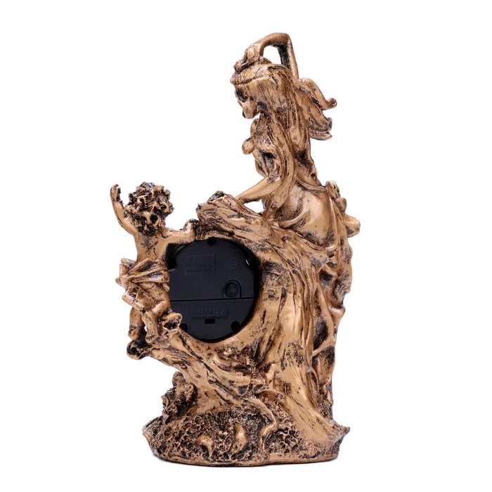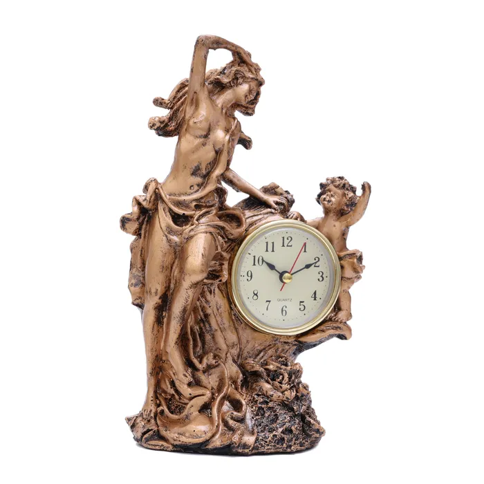 Часы настольные представлены в оригинальном дизайне, они отлично впишутся в интерьер в стиле рококо, барокко, классический. Интерьерные часы станут прекрасным декором для дома и дачи, их можно поставить как на прикроватную тумбочку в спальне, детской комнате, гостиной так и на стол или на комод в зале, холле или на кухне. Часы настольные имеют кварцевый механизм, который гарантирует высокую точность хода. Часы на не требуют частой замены батареек (тип АА), благодаря экономичному механизму. Чтобы поменять батарейку, аккуратно подденьте любым острым предметом циферблат, откройте его, внутри должна быть ячейка для батарейки.