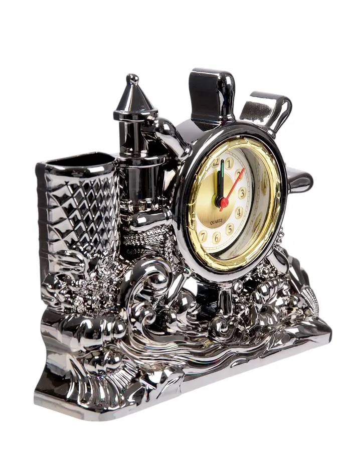 Часы настольные - органайзер для канцелярии будильник «Штурвал», 14×17×4 см — Характеристики