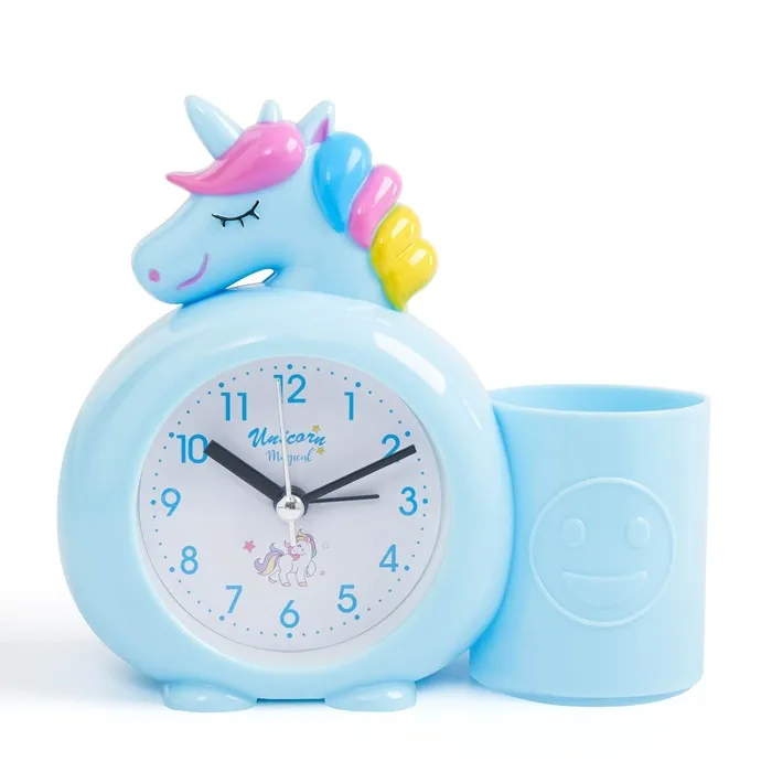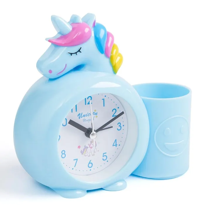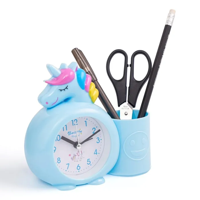 Часы - органайзер с будильником представлены в современном дизайне в форме единорога, они отлично впишутся в интерьер. Интерьерные часы станут прекрасным декором для дома и дачи, их можно поставить как на прикроватную тумбочку в спальне, детской комнате, гостиной так и на стол или на комод в зале, холле или на кухне. Будильник настольный имеет кварцевый механизм, который гарантирует высокую точность хода. Часы настольные обладают громким будильником, ребенку и вам будет комфортно просыпаться, на работу и в школу. Будильник на батарейках не требует частой замены батареек благодаря экономичному механизму. В карандашнице можно хранить канцелярские принадлежности: цветные карандаши, кисти, ручки, ножницы.