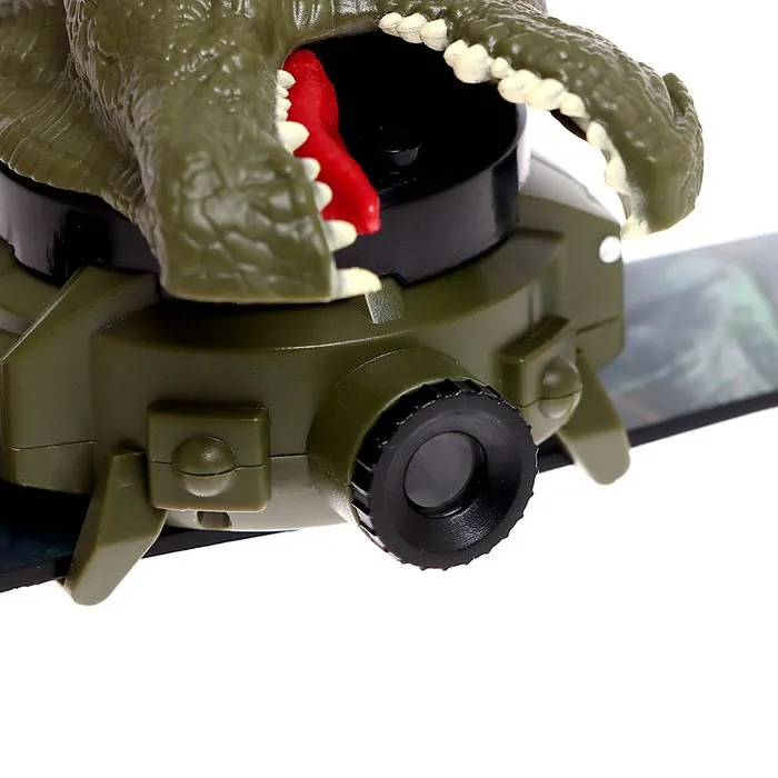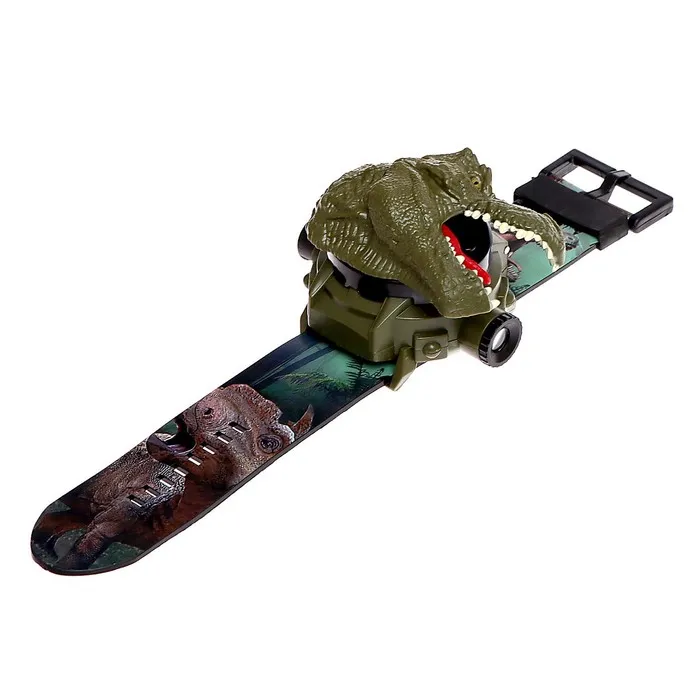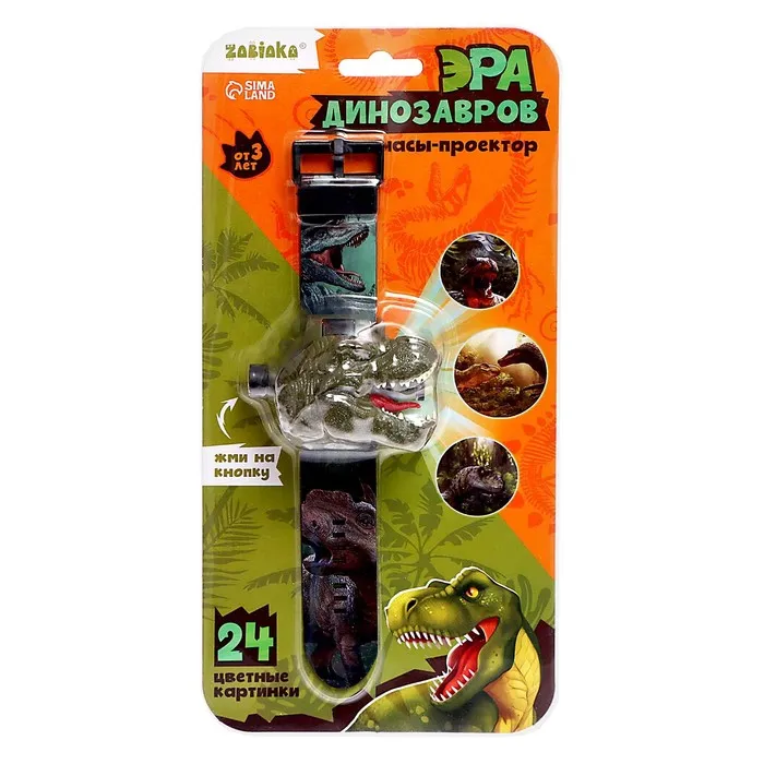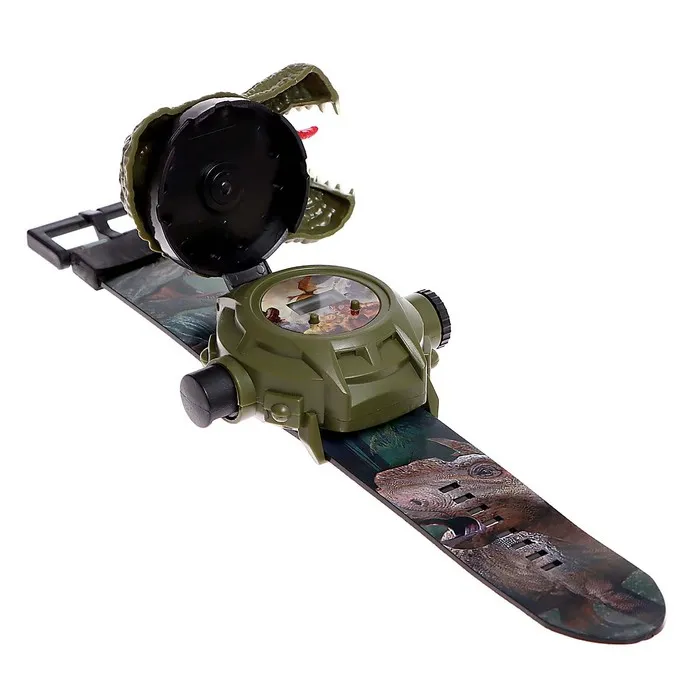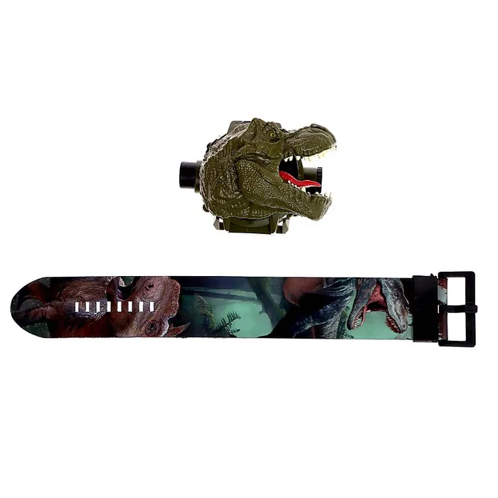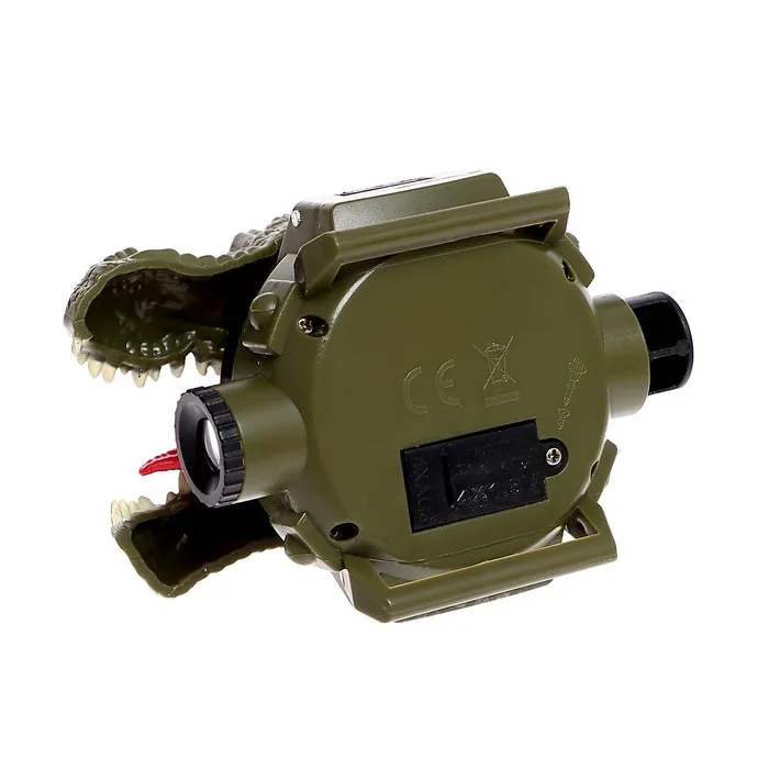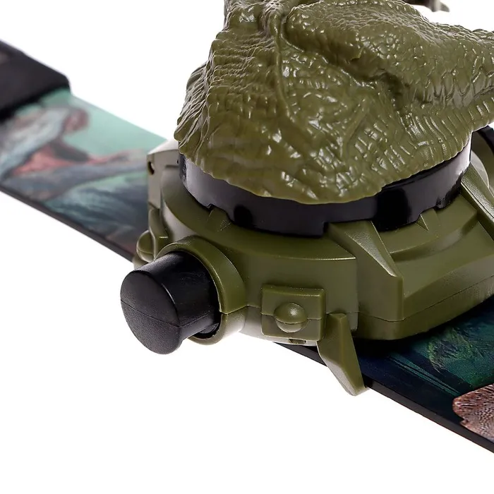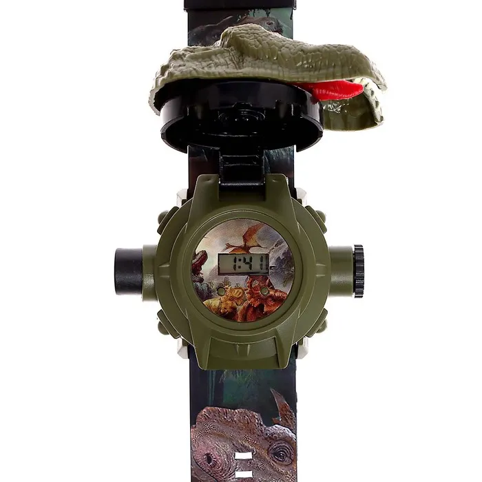 - На экране отображаются часы и минуты. Чтобы посмотреть время, необходимо поднять крышку в виде динозавра.