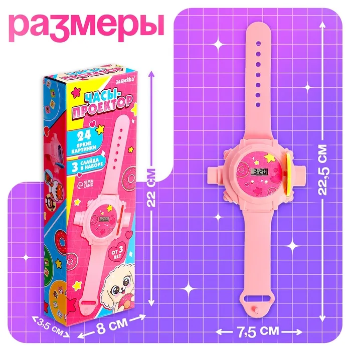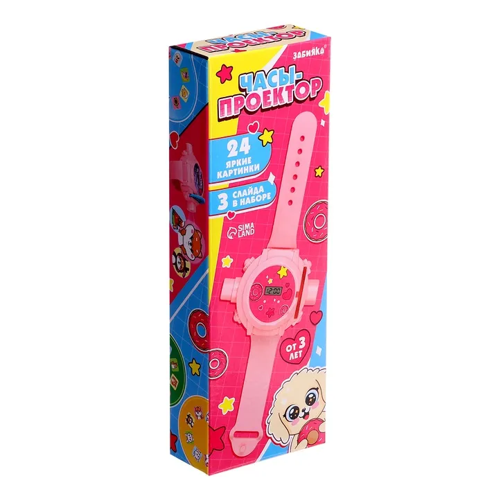 Часы-проектор «Милашки», световые эффекты, 24 картинки, цвет розовый — Характеристики