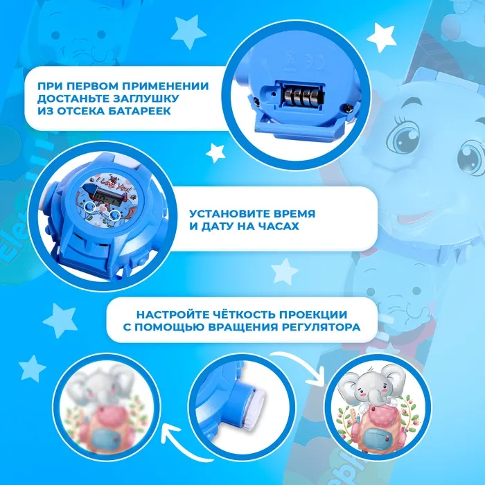 Часы-проектор показывают время и красочные картинки. Малыш научится правильно определять часы и минуты, а также поиграет со встроенным в устройство проектором.