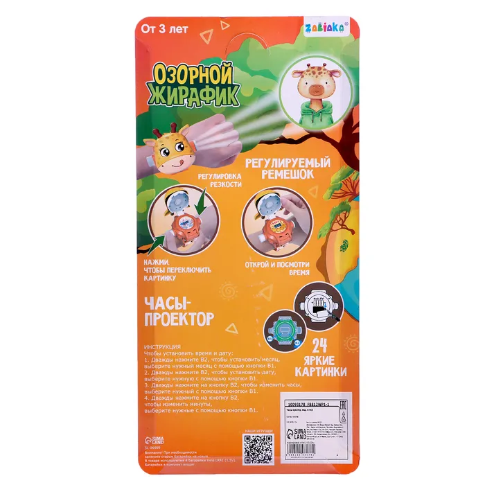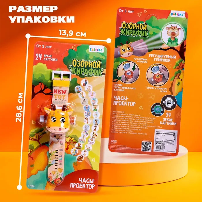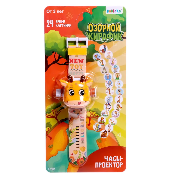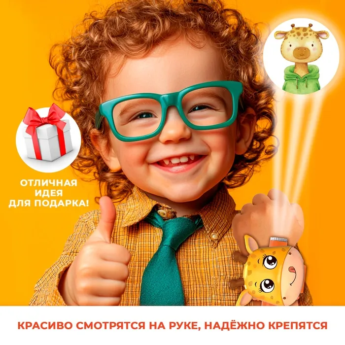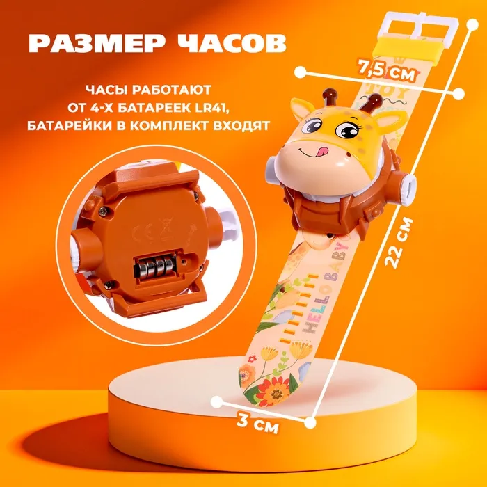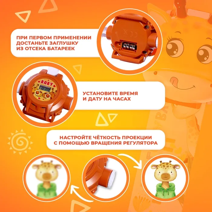 - На экране отображаются часы и минуты. Чтобы посмотреть время, нужно поднять крышку в виде жирафика.