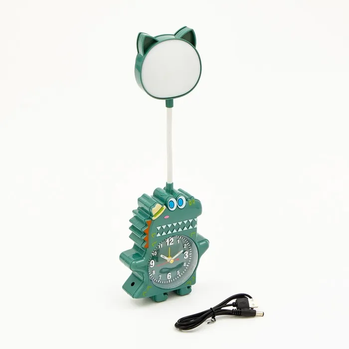 Часы - лампа представлены в ярком дизайне в форме динозаврика, они отлично впишутся в ваш интерьер. Интерьерные часы со светильником станут прекрасным декором для дома и дачи, их можно поставить как на прикроватную тумбочку в спальне, детской комнате, гостиной так и на стол или на комод в зале, холле или на кухне. Часы можно использовать в качестве ночника или офисной лампы на столе школьника.