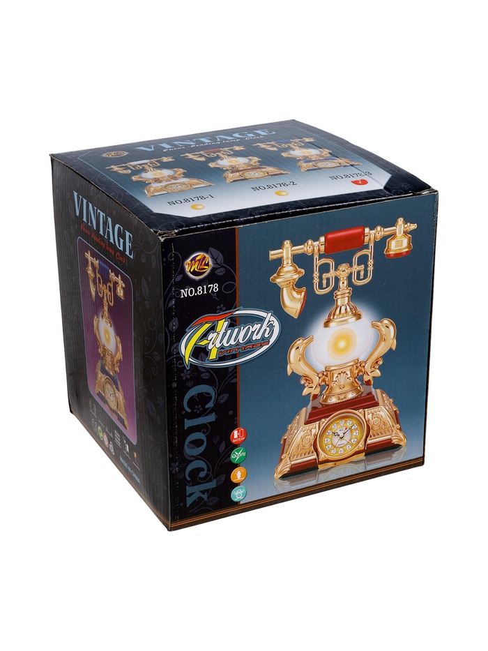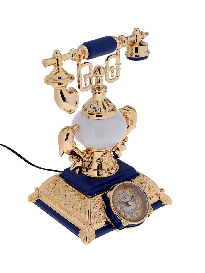 Кварцевый механизм обеспечивает точный ход, а мягкая подсветка превращает устройство в приятный ночник. Такое сочетание декоративности и функциональности делает светильник-телефон отличным решением для спальни, кабинета или детской.