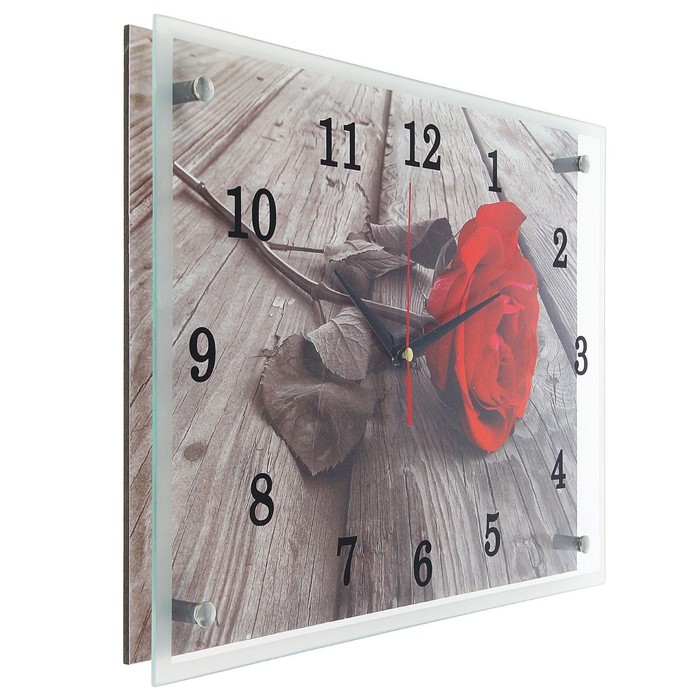 Часы=картина настенные, интерьерные «Красная роза», бесшумные, 30×40 см — Характеристики