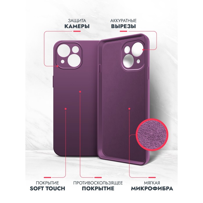 Чехол BoraSCO для iPhone 15 Plus, Soft Touch, силикон, микрофибра, фиолетовый — Характеристики
