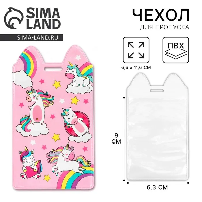 Чехол для бейджа «Единороги», 11,6 х 6,6 см