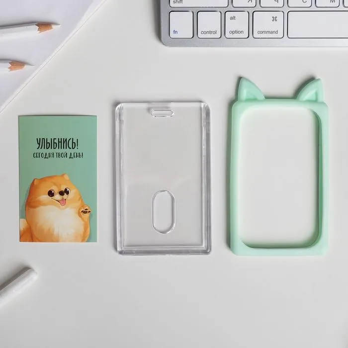 Чехол для бейджа с ушками «Улыбнись», 7 х 12 см