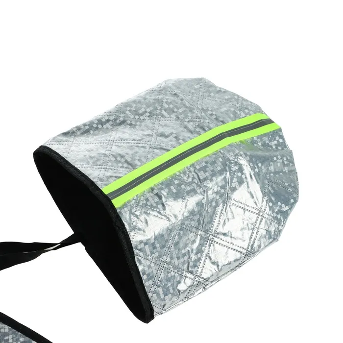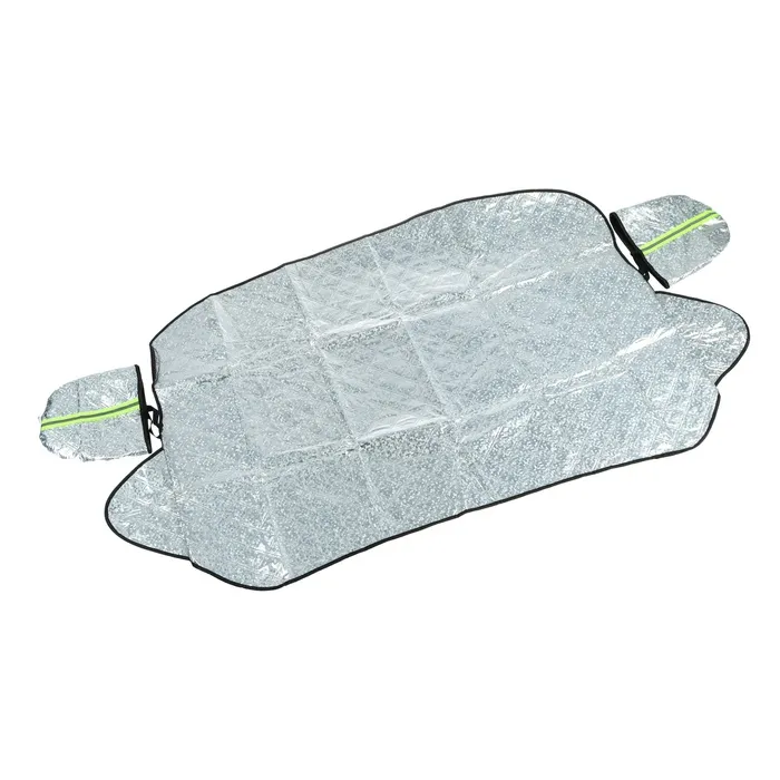 Чехол для лобового стекла и боковых зеркал Cartage представляет собой полотно из фольгированного материала. Серебристая поверхность чехла отражает солнечные лучи, защищая салон и торпеду автомобиля от сильного нагрева. Чехол имеет универсальный размер 140×95 см, за счет этого может быть установлен в автомобиле любой модели и марки.