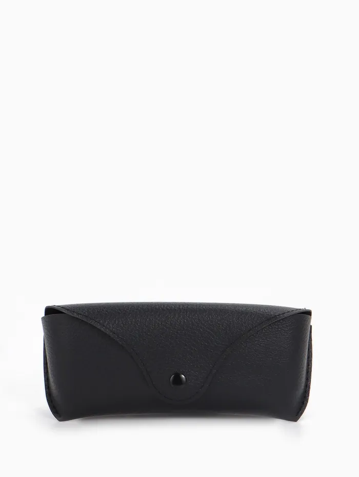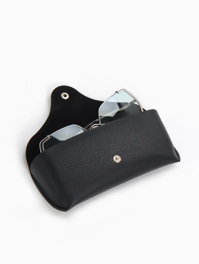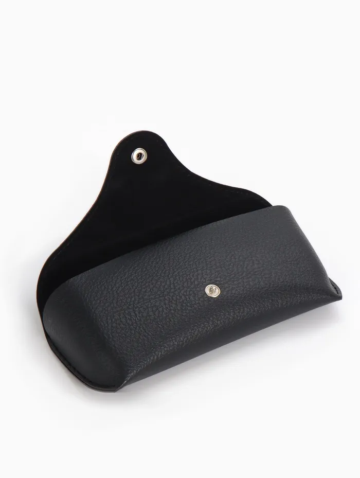 Стильный и практичный чехол для очков. Элегантный дизайн в черном цвете с универсальными размерами: длина 16 см, ширина 6 см. Футляр без жесткого корпуса, с застежкой на кнопку, выполнен из качественного материала — искусственной кожи. Подходит для мужчин и женщин.