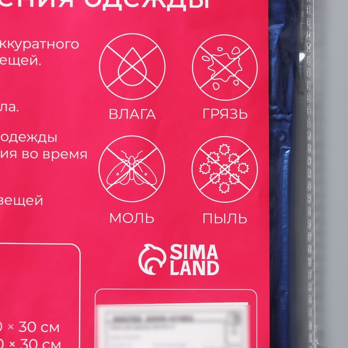 Чехол для одежды Доляна, 60×102 см, цвет синий, прозрачный — Характеристики