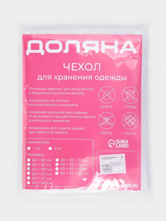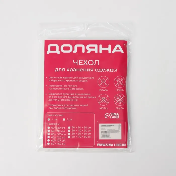 Чехол для одежды Доляна, плотный, 60×100 см, цвет белый, прозрачный — Характеристики