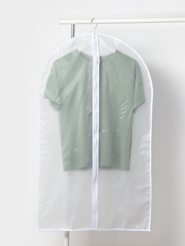 - Используя чехол для одежды, вы значительно экономите пространство. Это особенно актуально, если у вас много вещей и маленький шкаф.