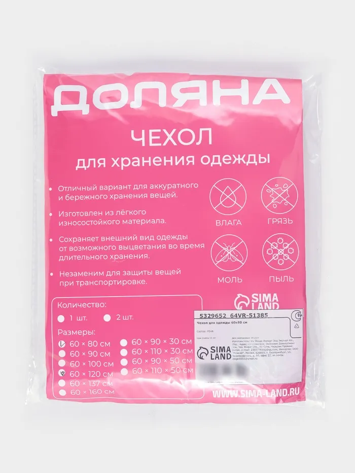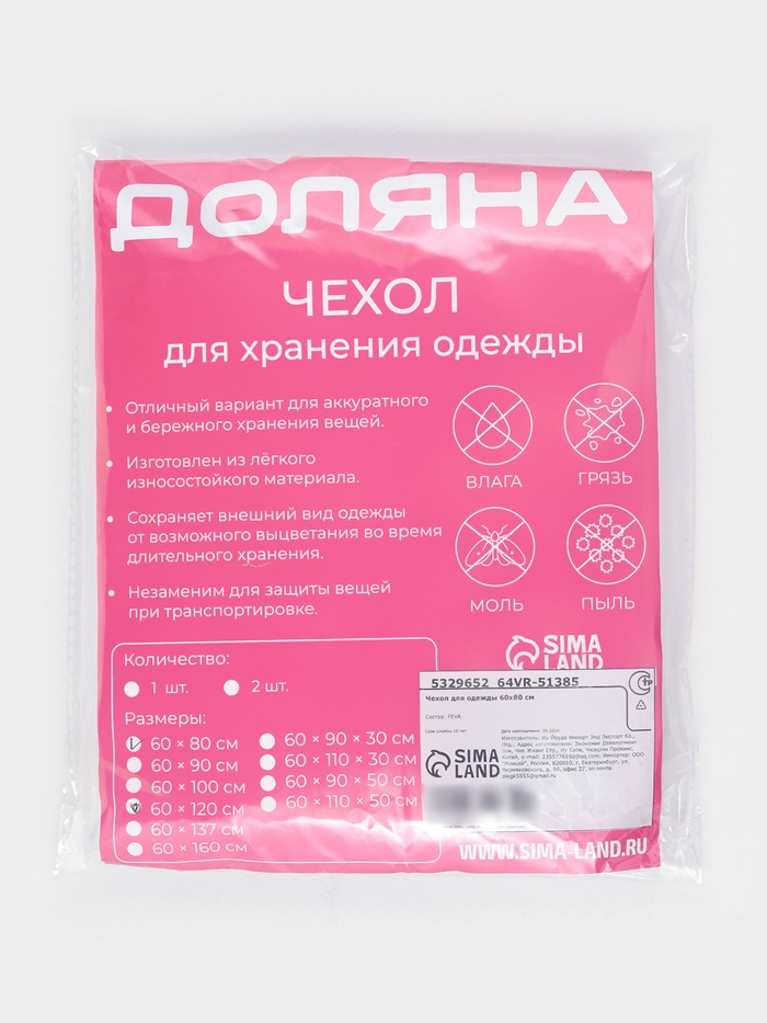 - Чехол надёжно защищает одежду от пыли и грязи, от насекомых, механических повреждений или от возможного выцветания.