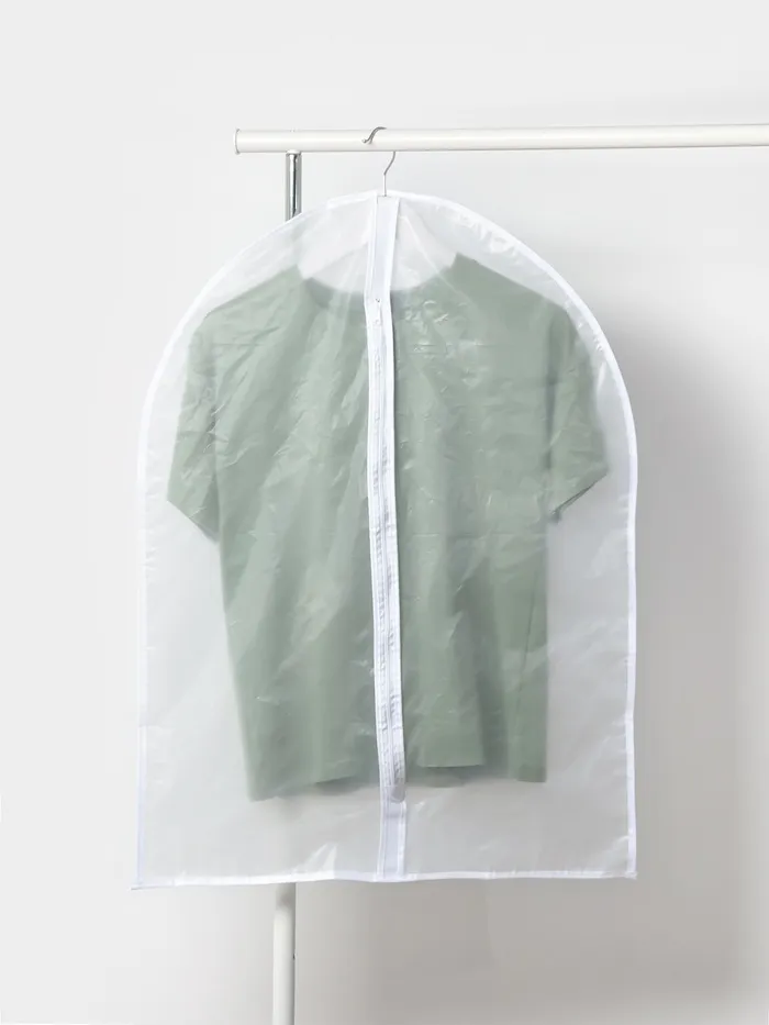 - Используя чехол для одежды, вы значительно экономите пространство. Это особенно актуально, если у вас много вещей и маленький шкаф.