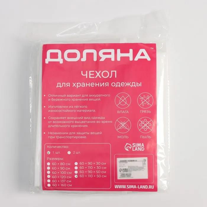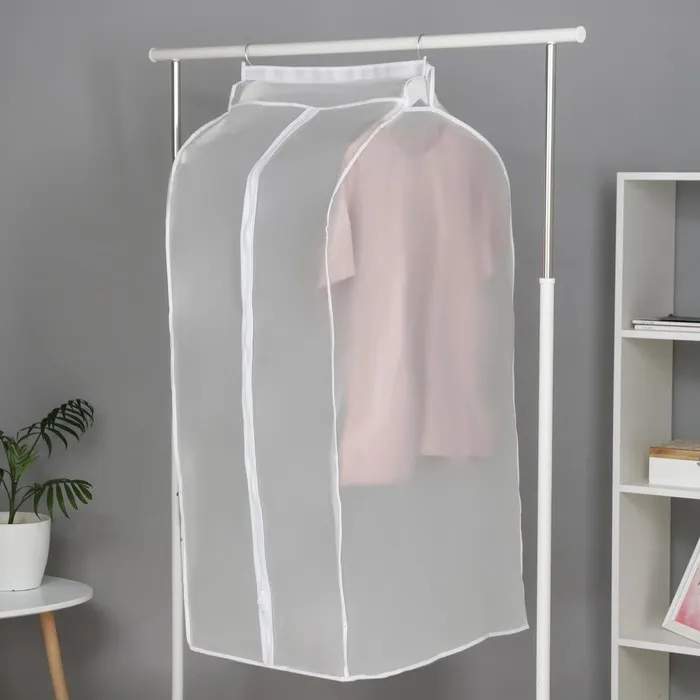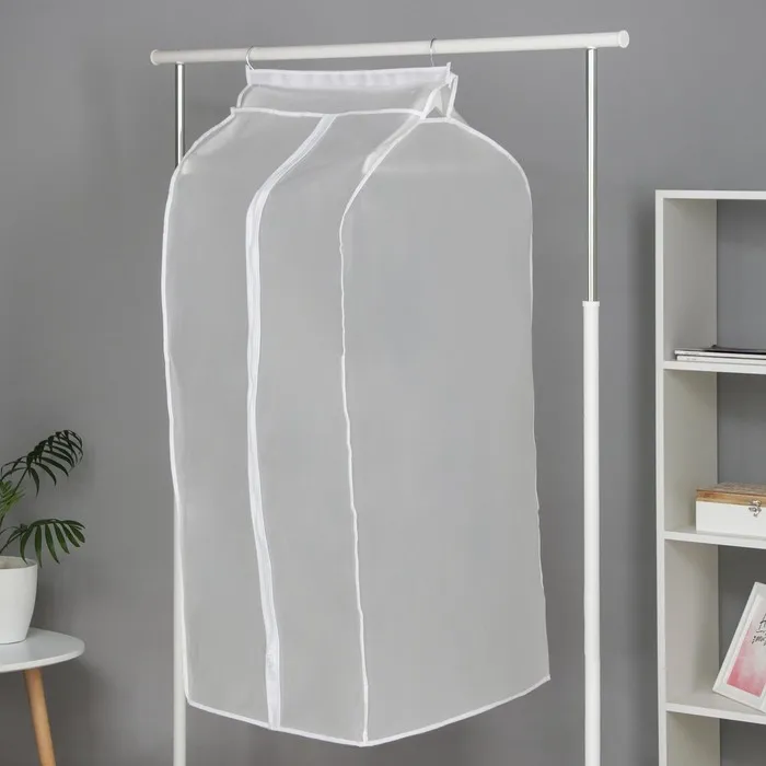 Чехол для одежды Доляна, плотный, объёмный, 60×110×50 см, белый — Характеристики