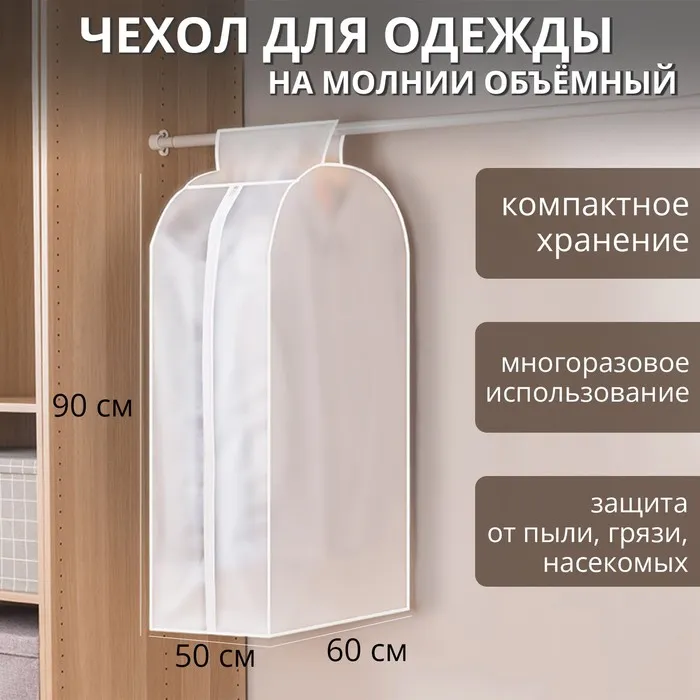 Чехол для одежды Доляна,плотный, объёмный, 60×90×30 см, цвет белый — Характеристики