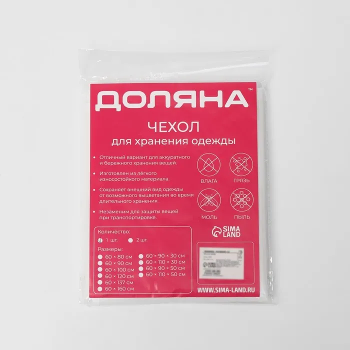 - Чехол надёжно защищает одежду от пыли и грязи, от насекомых, механических повреждений или от возможного выцветания.