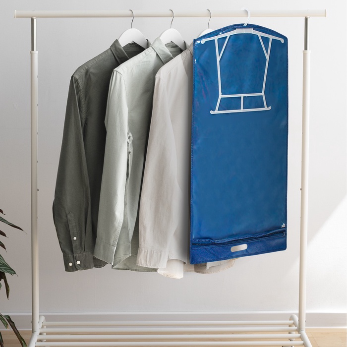 Чехол надёжно защищает одежду от пыли и грязи, насекомых, механических повреждений и возможного выцветания.