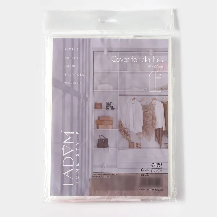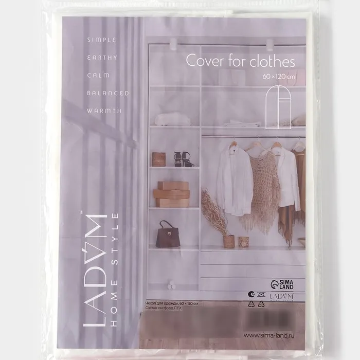 Чехол для одежды LaDо́m, ПВХ окно, плотный, 60×120 см, белый — Характеристики