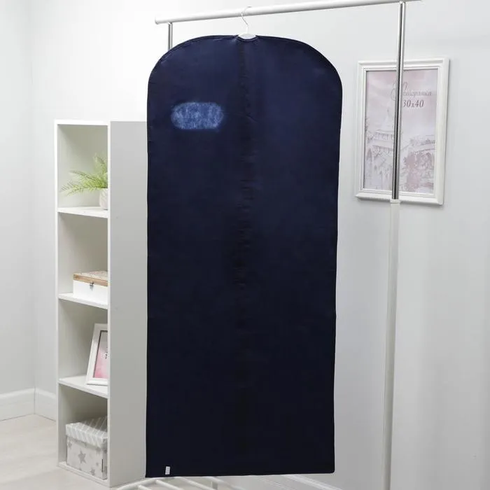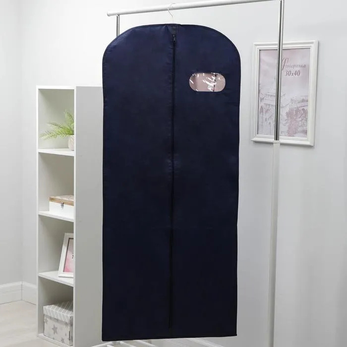 Чехол для одежды с окном, 60×140 см, спанбонд, синий