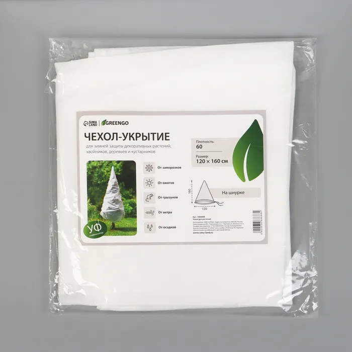 Чехол пригодится для укрытия растений в холодное время года, так как зимой растения сильнее всего нуждаются в защите. Применяется для декоративных растений, цветов, деревьев и кустарников. Помогает продлить естественный покой растений при ранних оттепелях. .