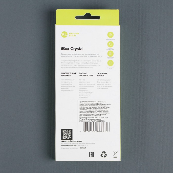 Чехол iBox Crystal для iPhone 13 , с отсеком под карты, силиконовый, прозрачный — Характеристики