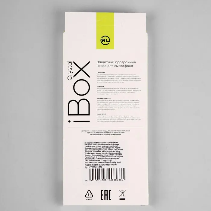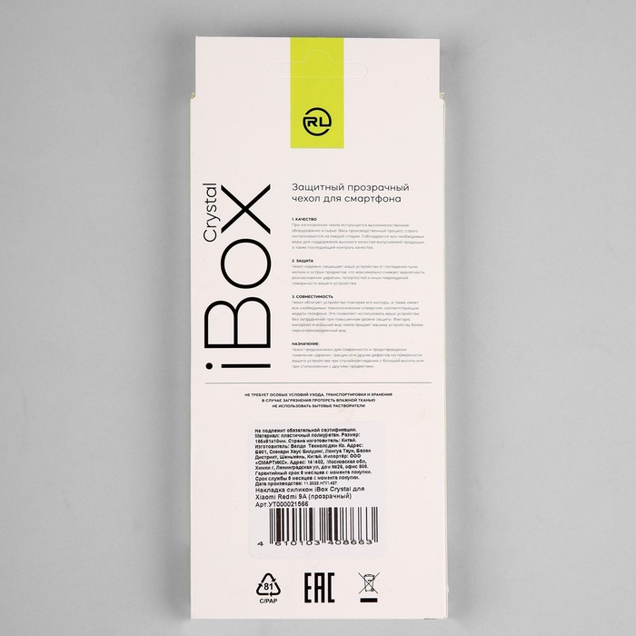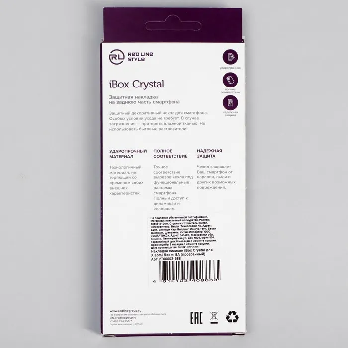 Чехол iBox Crystal для Xiaomi Redmi 9A, силиконовый, прозрачный — Характеристики