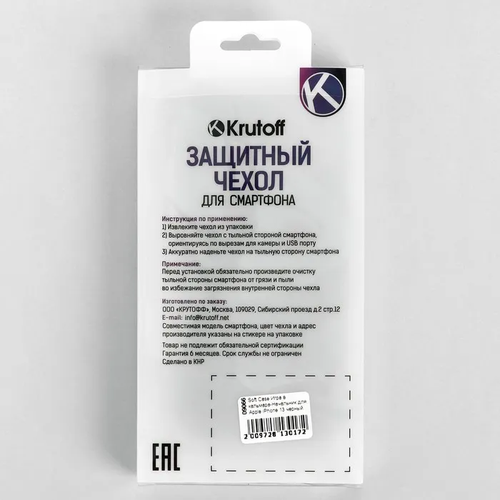 Чехол Krutoff, для Apple iPhone 13, Soft Case, начальник, черный — Характеристики