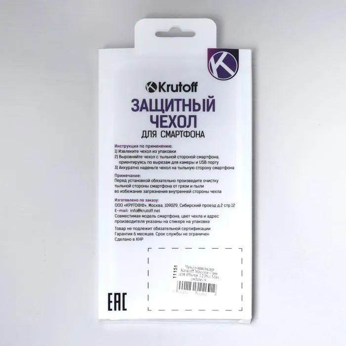 Чехол Krutoff, для iPhone 12 Pro Max, матовый, белый — Характеристики